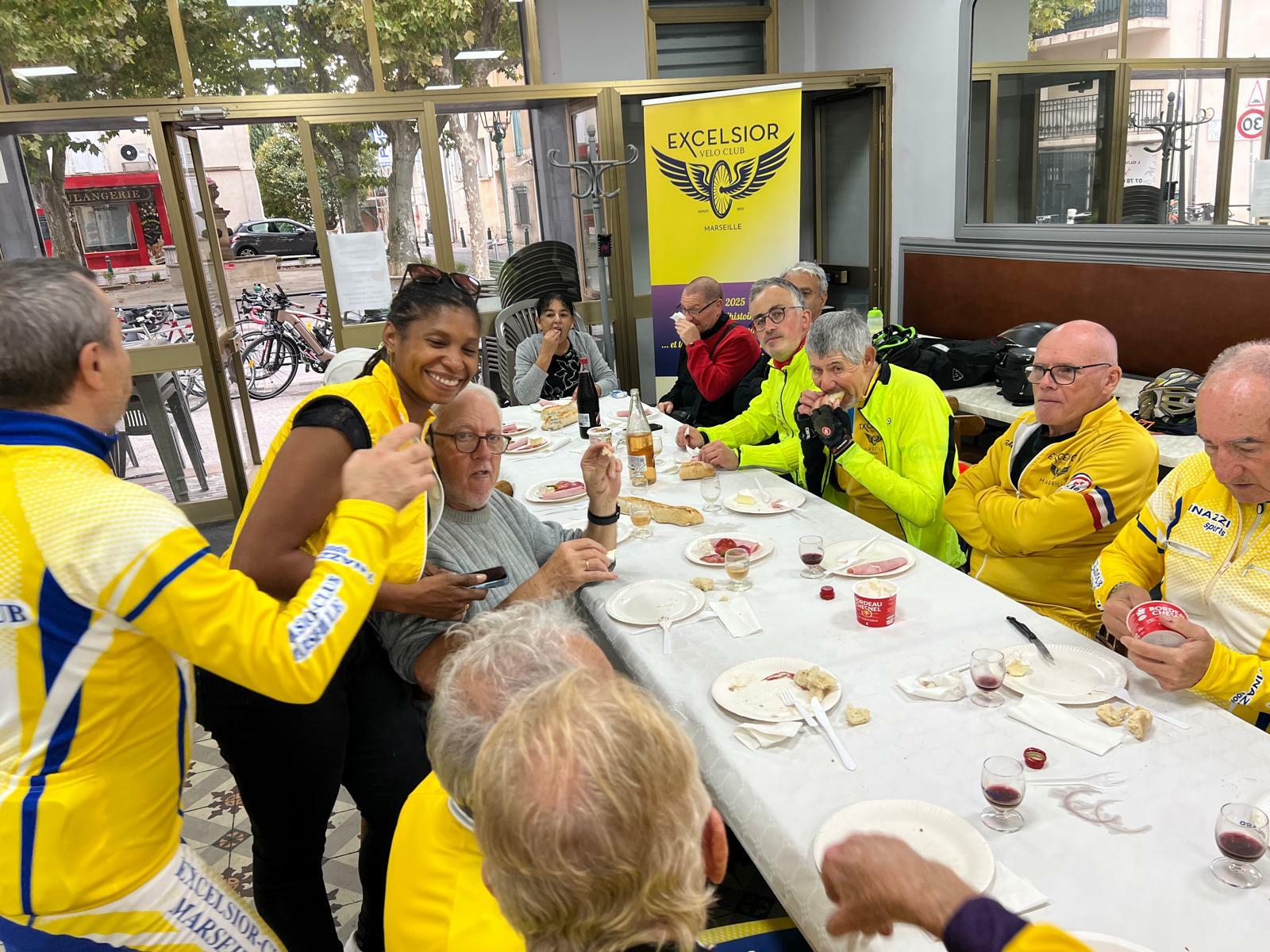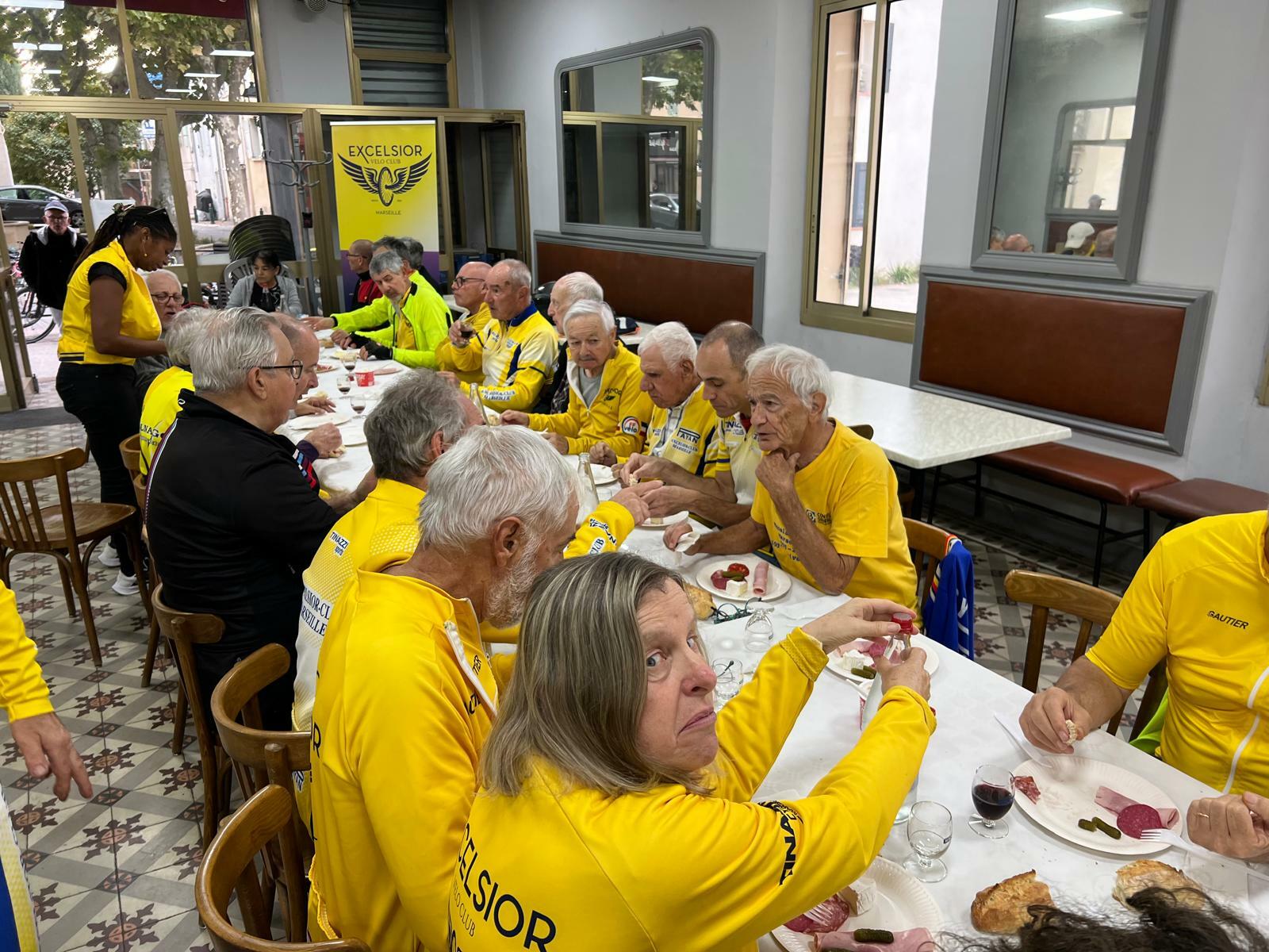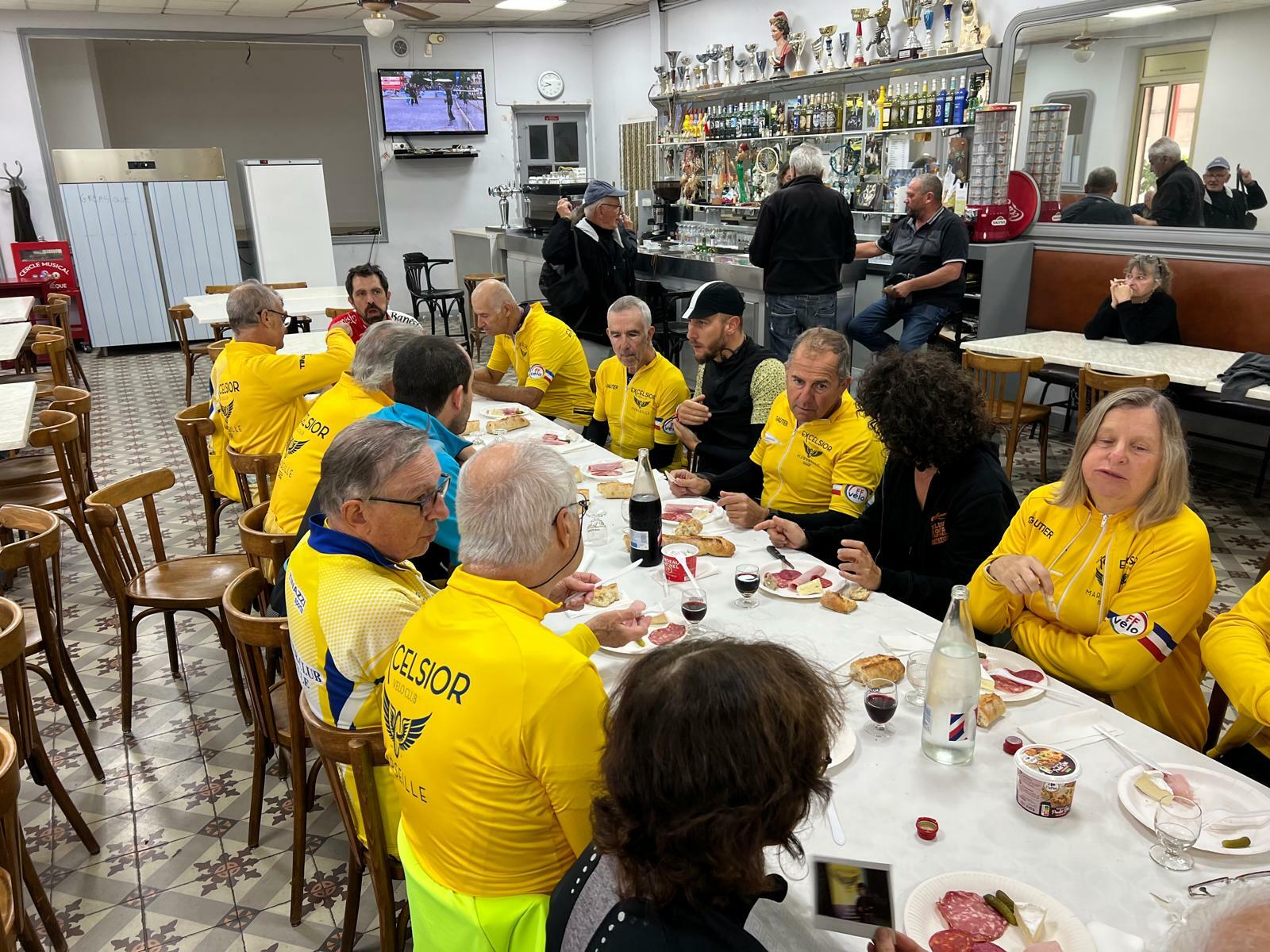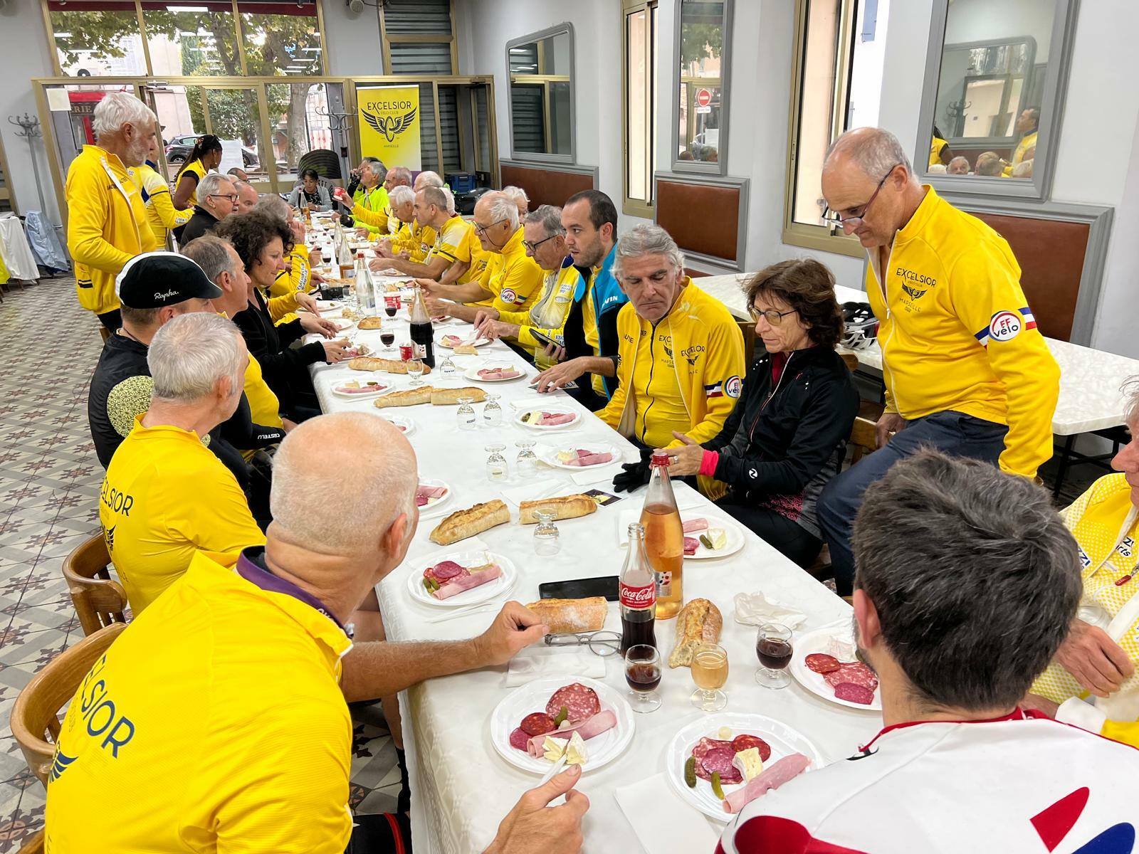 Comme tous les ans, Excelsior offre un casse croute convivial à ses adhérent.es dans une ambiance chaleureuse. On se retrouve avec plaisir, et cela permet aux nouvelles têtes de s'intégrer et de faire connaissance avec les plus ancien.nes. Merci à Bruno de nous accueillir au Cercle Musical de Gréasque.