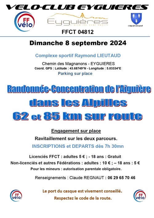 Le Vélo Club d'Eyguières n'est pas en mesure d'organiser sa randonnée-concentration prévue dimanche 8 septembre.