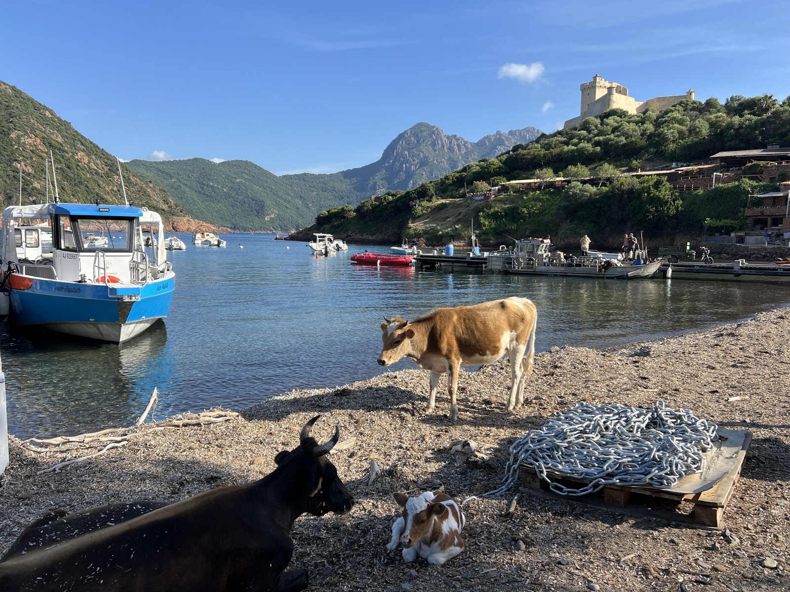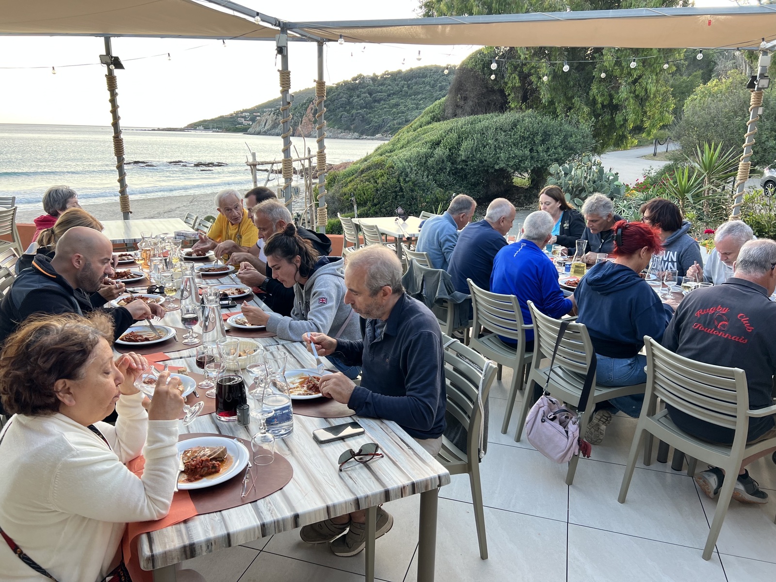 Hébergés pour une semaine en pension complète dans le village vacances de l'ORTF près de Cargèse, le cadre était idyllique, les pieds dans l'eau et le dos à la montagne, un endroit rêvé pour faire du vélo.