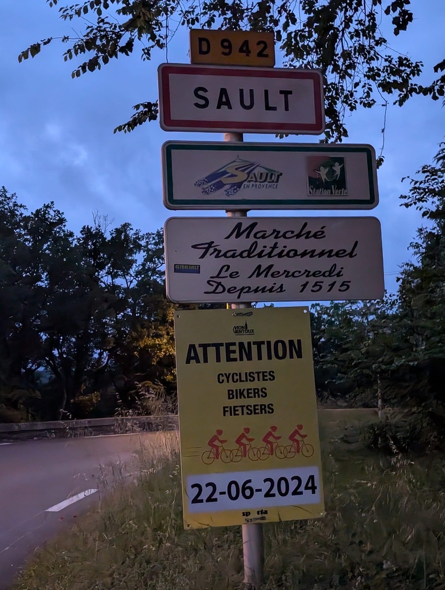 Hier a 16h00 nous étions 7 et 1 accompagnant Excelsior inscrits à l’épreuve du Ventoux Full Moon, un BRM (Brevet de Randonneurs Mondiaux) de 300 km.